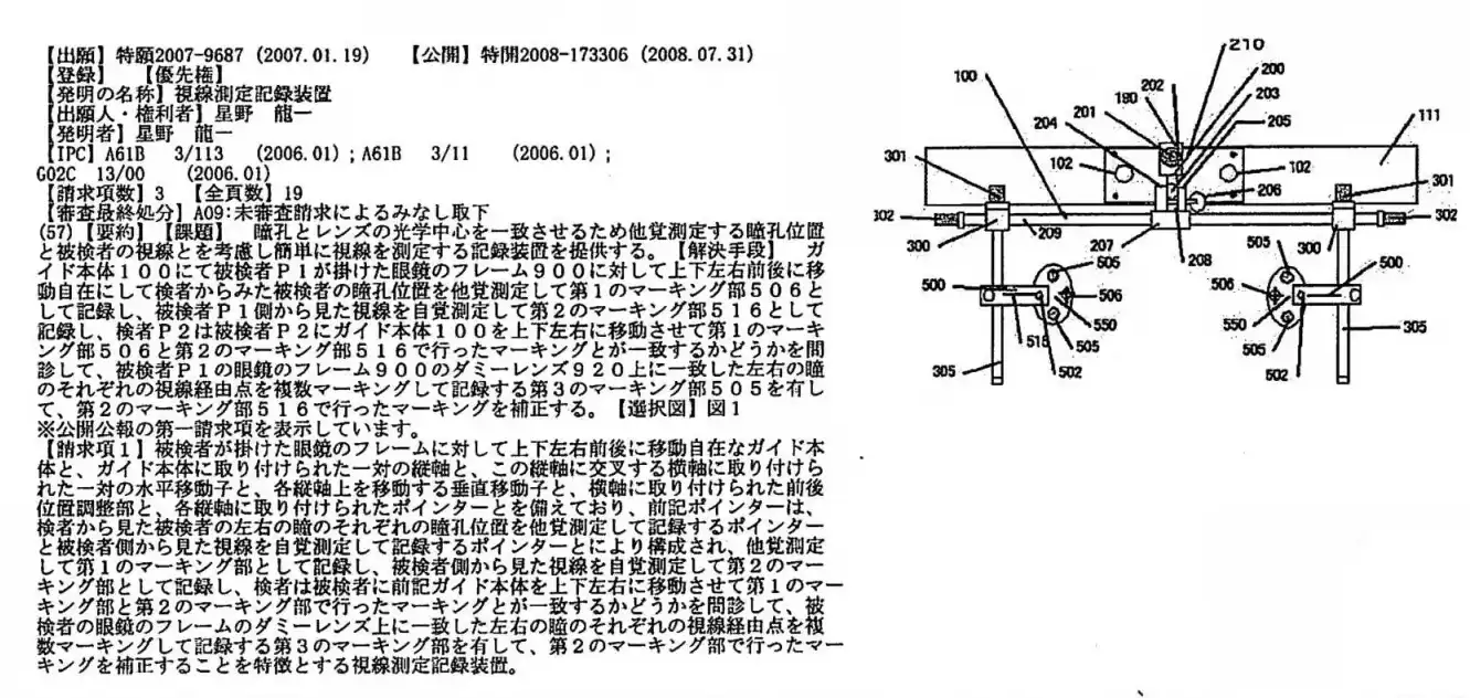 「瞳孔中心確認記録装置」をはじめ、店主(星野龍一)が取得してきた特許の数々です。下記の画像をクリックすると、くわしい情報をお読みいただけます。