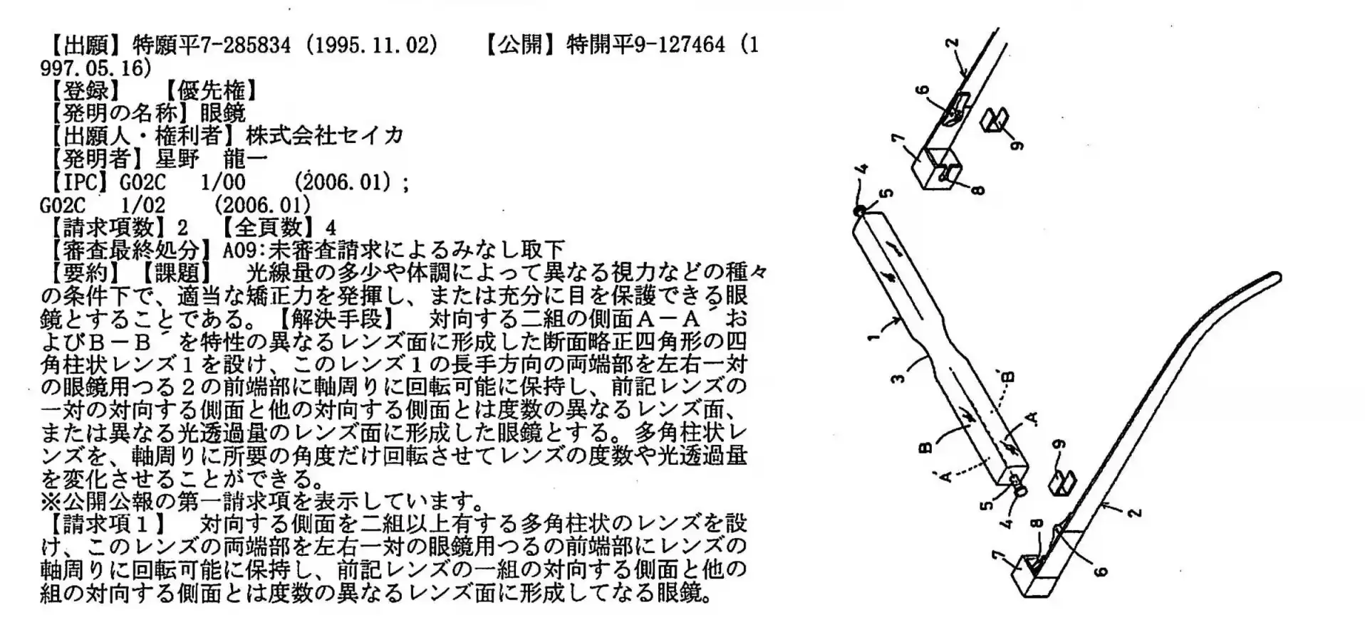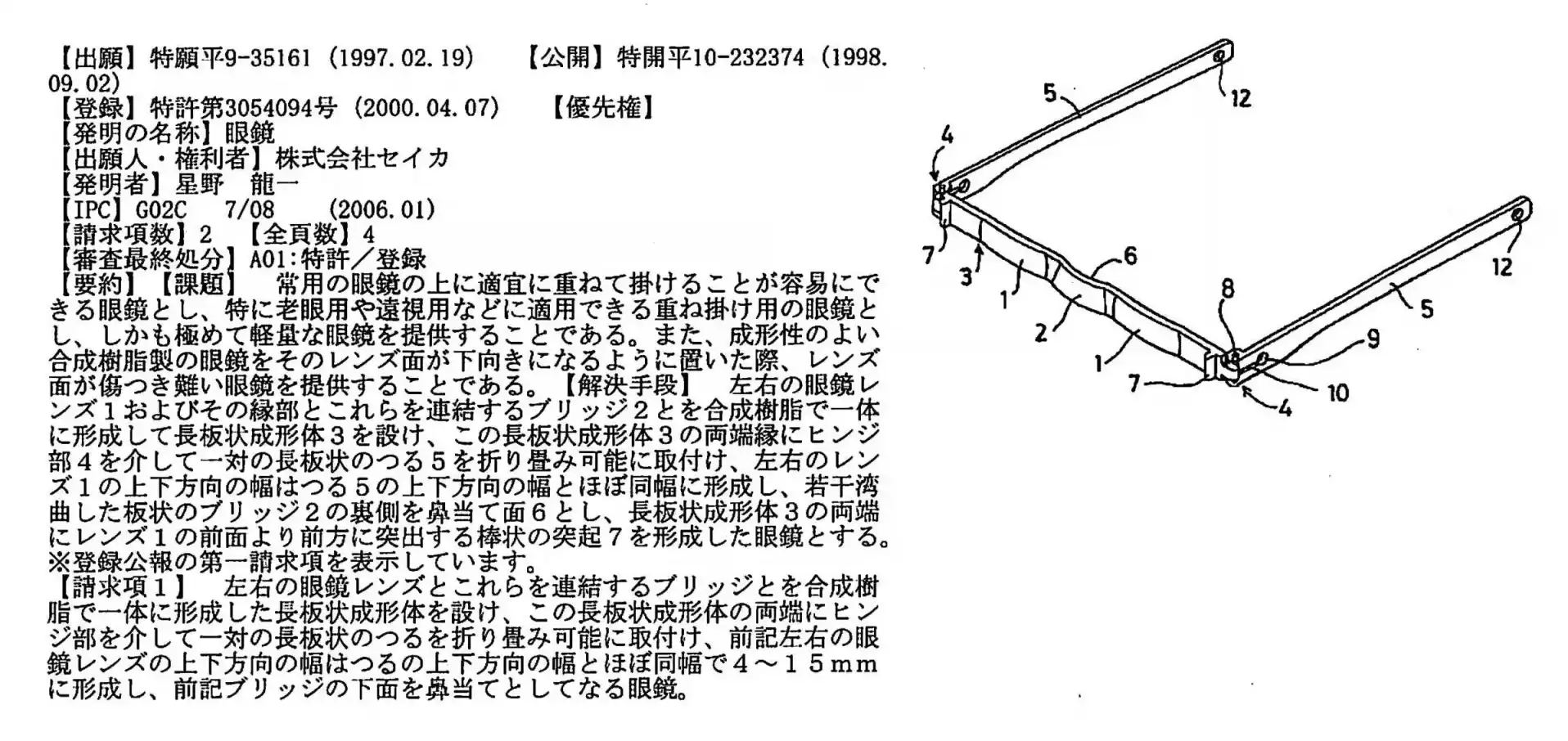 「めがねのホシノ」は、独創的な製品や技術の研究開発に取り組んできました。ギネスブックを始めとする各種の賞をいただくと共に、数多くの特許を取得してきました。